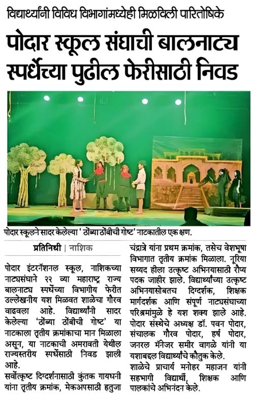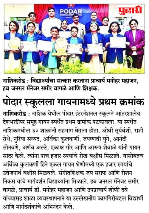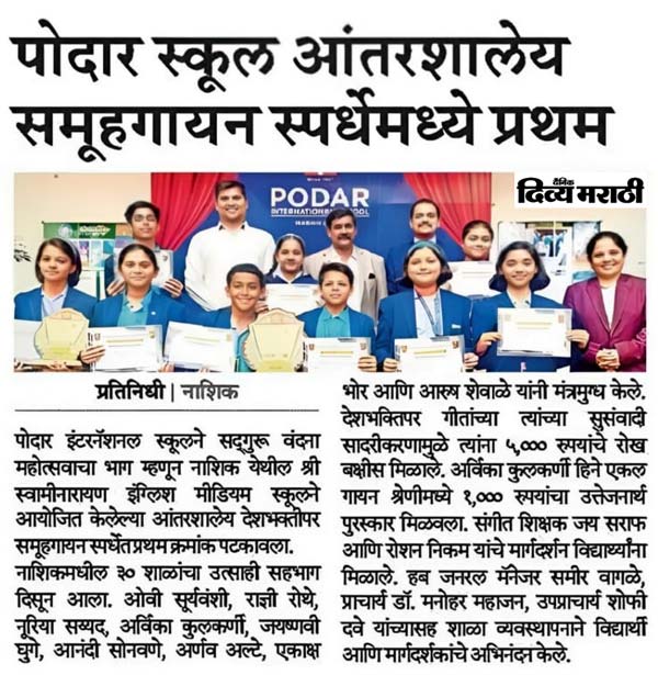 Publication : Divya Marathi / PudhariPodar International School, Nashik...