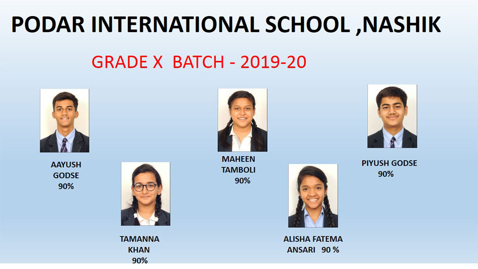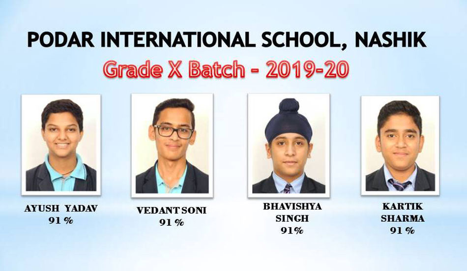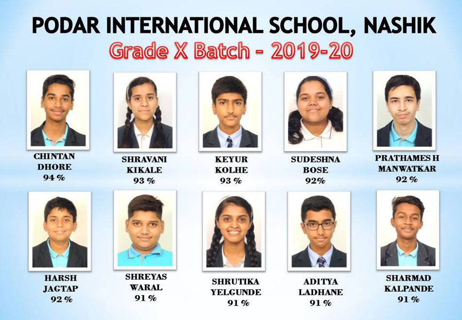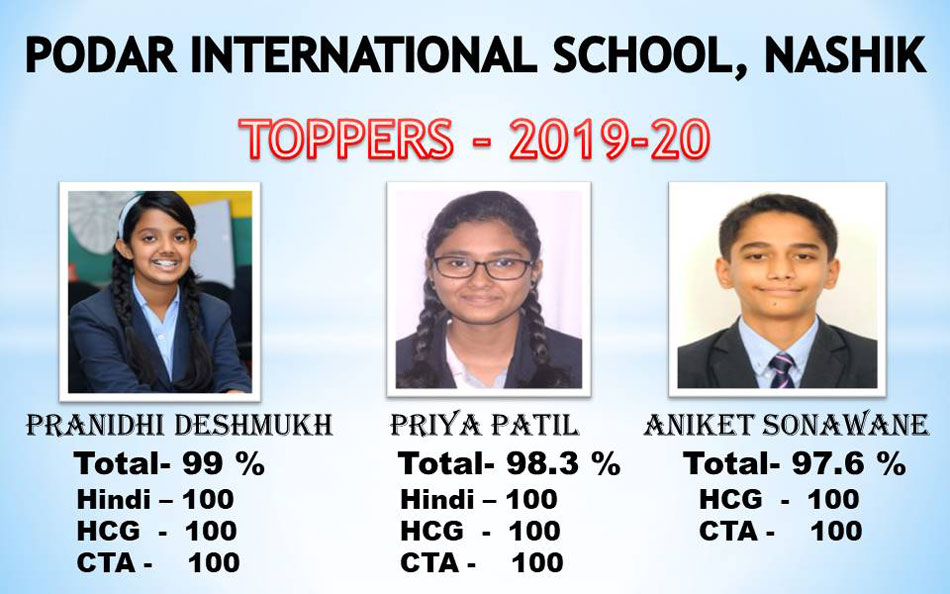 The ICSE Grade X Board results were declared on 10/07/2020 at 03 p.m. Podar International School, Nashik has created a history by bagging City Second Topper with Ms.Pranidhi Deshmukh scoring 99% , a centum in 3 subjects namely Computer Applications, Hindi and History ,Civics and Geography. Ms.Pranidhi Deshmukh is also the School Topper. Ms.Priya Patil and Master Aniket Sonawane are the second (98.33%) and third (97.67%) Toppers respectively in the School.