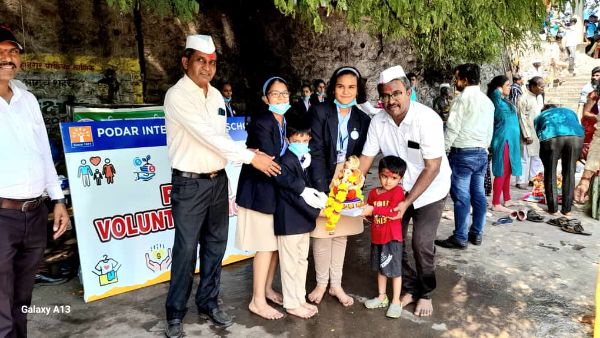 Our young Podarites played a meaningful role by collecting Shadu Mati (natural clay) after the Ganesh Visarjan.