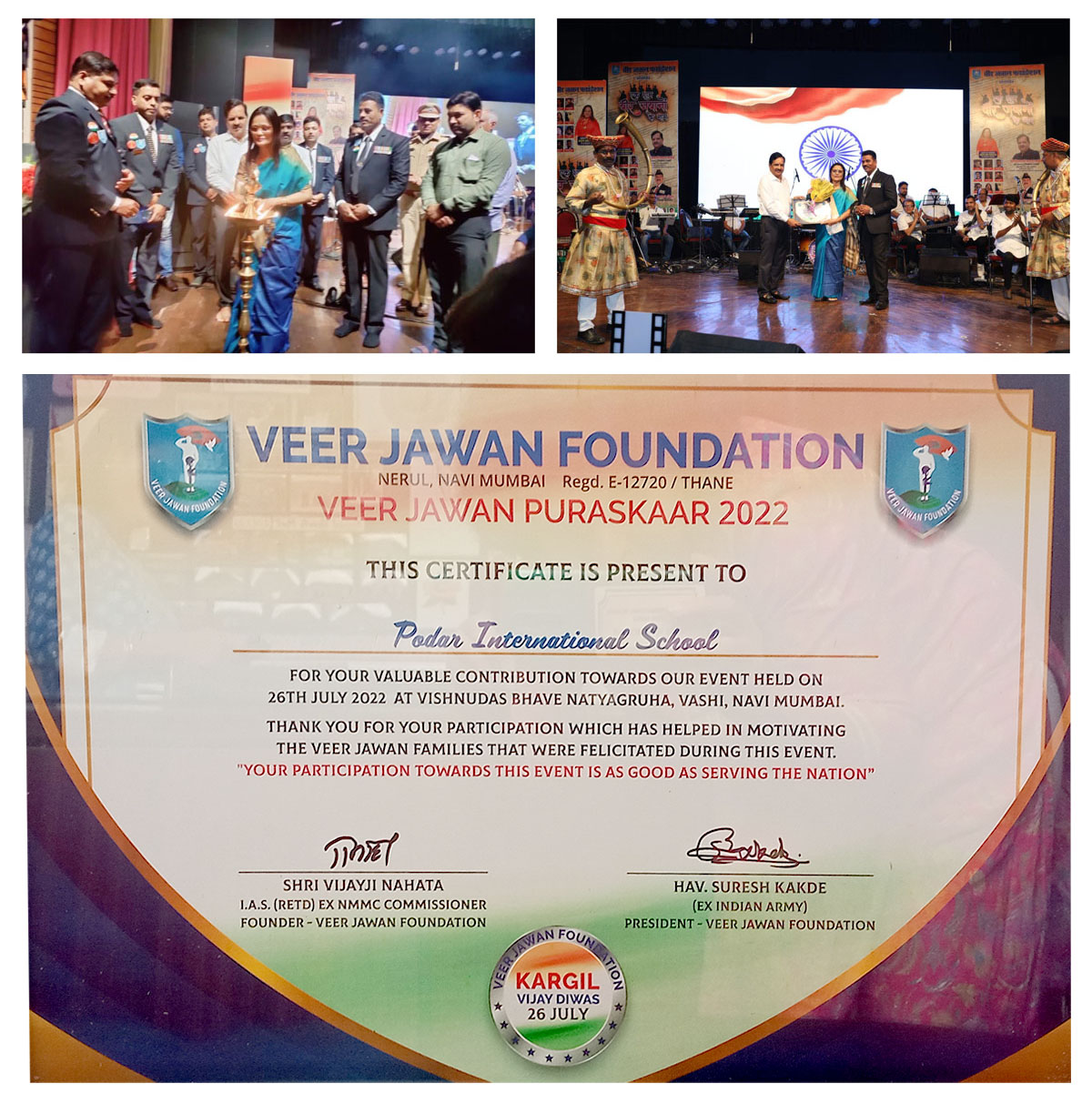 Vir Jawan Foundation presented an award to Podar International School - Nerul CBSE for the contribution of their school towards the Kargil Heroes.