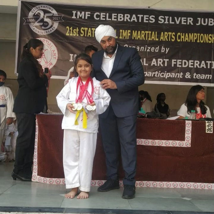 We are proud to announce that Aarushi from Grade 2 has bagged 4 Gold Medals in 21st State level IMF Martial Arts Championship held in Navi Mumbai on 20 February, 2022. (Fist breaking, Leg Breaking, Punches, Shadow Sparring)