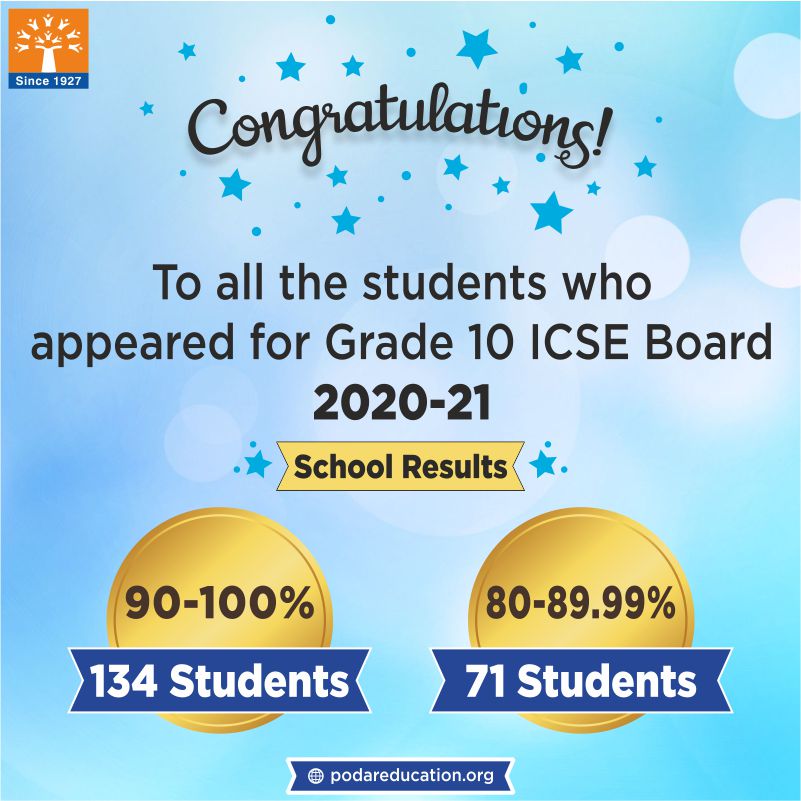Podar International School, Nerul would like to congratulate all our students who passed out with flying colours in the ICSE Std X Board Examinations.