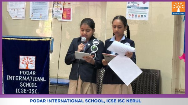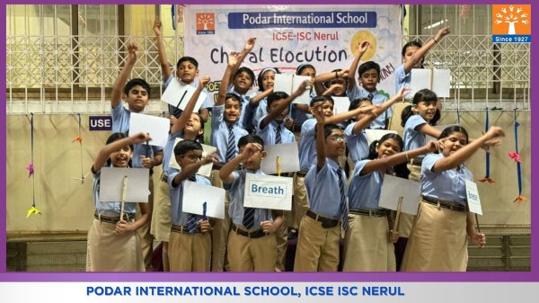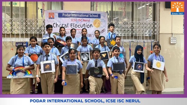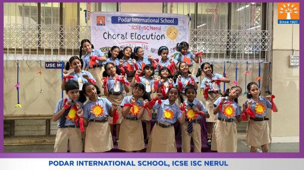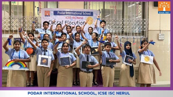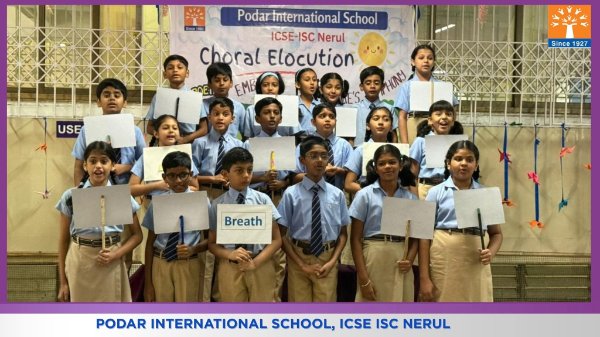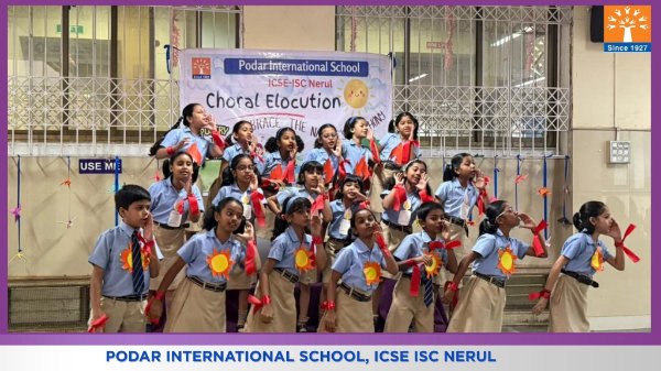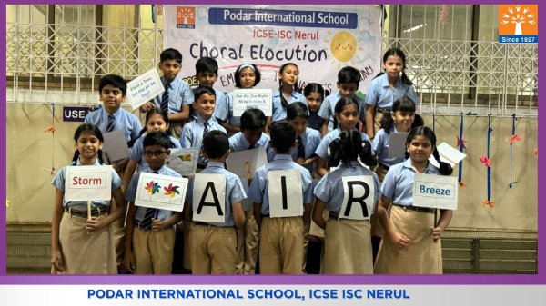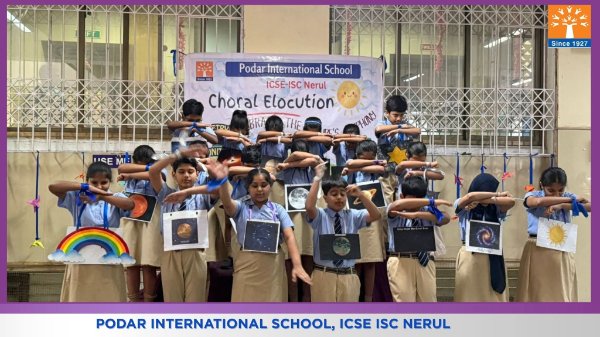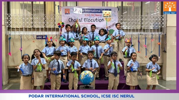 Podar International School, ICSE conducted a Choral Elocution on 23rd January 2026 on the theme “Five Elements of Earth.” The students beautifully presented the significance of Earth, Water, Fire, Air, and Space through synchronized voices, expressive narration, and rhythmic coordination. The performance highlighted the importance of harmony with nature and environmental responsibility. The confident presentation and teamwork of the students made the programme engaging, meaningful, and impactful for the audience.