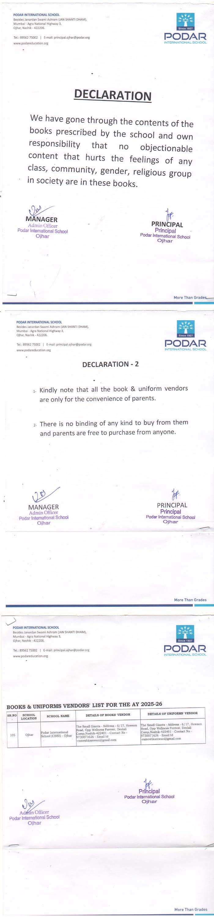 CBSE Declaration Letter in Ojhar, Nashik, Maharashtra