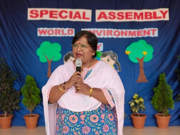 A special assembly was conducted by teachers, where they shared inspiring thoughts, quotes, and messages on the importance of protecting the environment.
