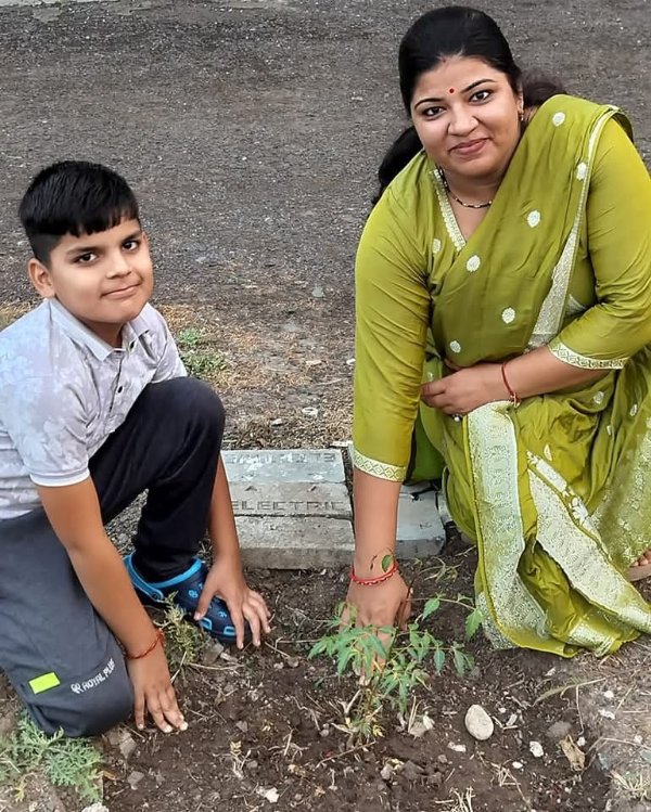 At home, students participated in the “Ek Ped Maa Ke Naam” initiative by planting a sapling with their mother.