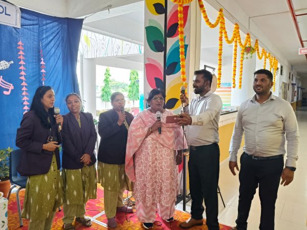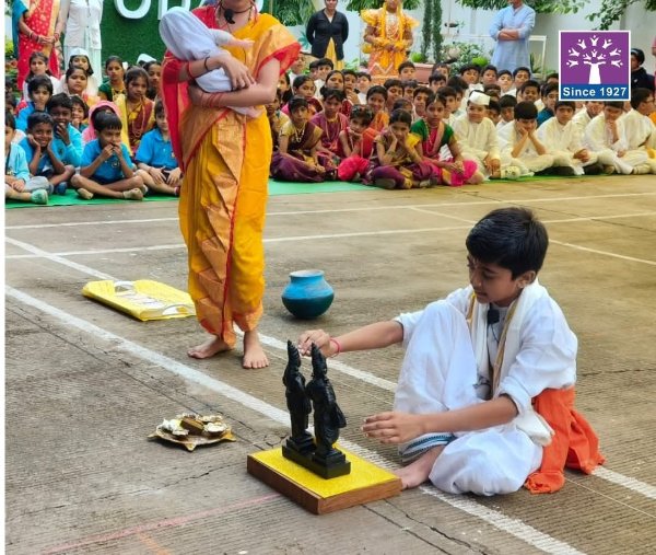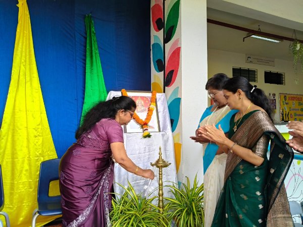 A solemn pooja was performed by Principal Dr. Jasintha Parke Ma'am, HM Shravani Kamuju Ma'am, School Coordinator Vaishali Wagh Ma’am, and other dignitaries.
