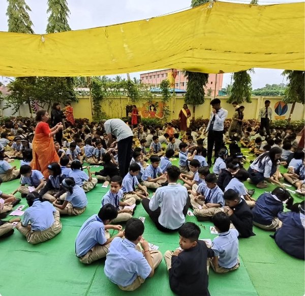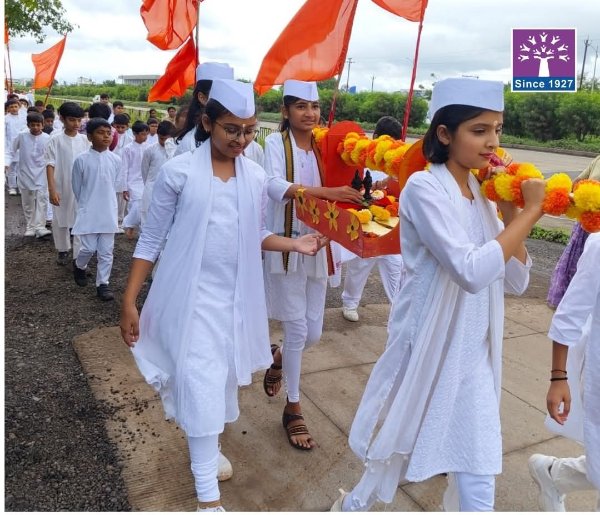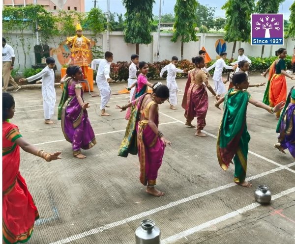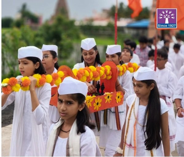 The day began with a symbolic waari procession within the school premises, replicating the traditional journey to Pandharpur. Students and teachers participated, carrying palanquins adorned with tulsi plants and chanting devotional songs.