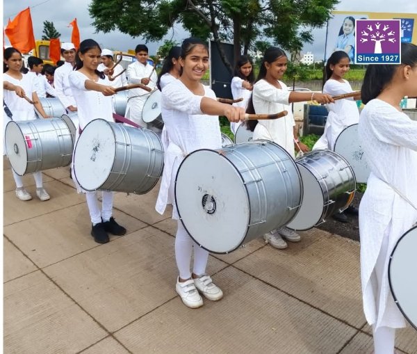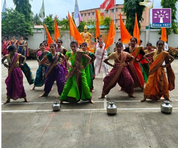 Students presented traditional bhajans dedicated to Lord Vitthal, accompanied by rhythmic dance performances. The lively beats of dhol and taal added to the festive atmosphere.