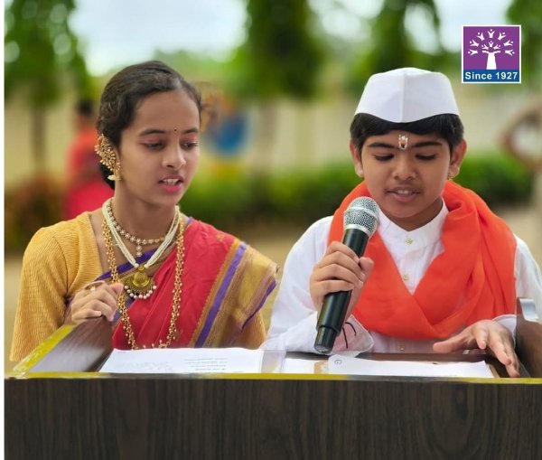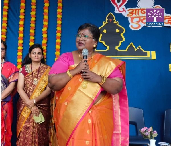 A speech was delivered by a students explaining the historical and spiritual significance of Aashadi Ekadashi which highlighted its importance in Maharashtrian culture and its role in fostering devotion and community spirit.