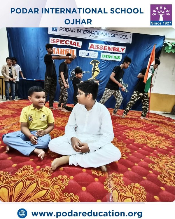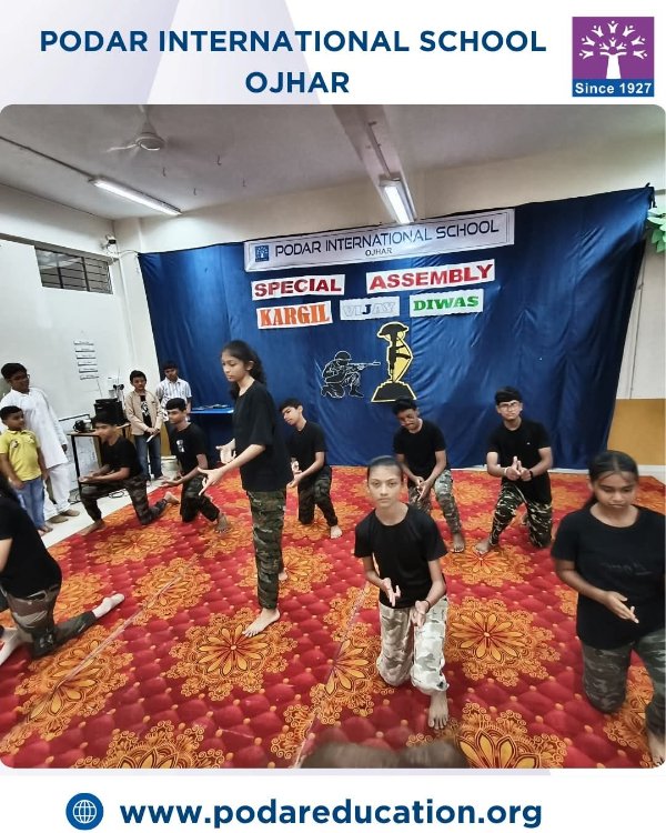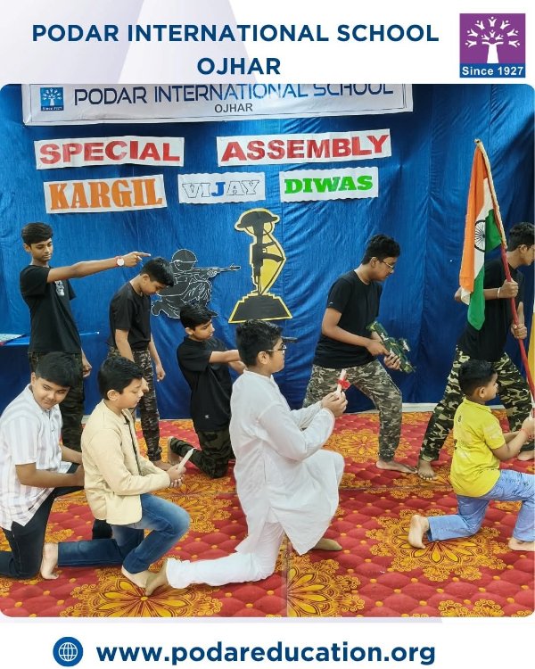 A special assembly was conducted on the occasion of Kargil Vijay Diwas at Podar International School #Ojhar on 25th July 2025 by the students of Grade IX to commemorate the bravery and sacrifice of our Indian soldiers.