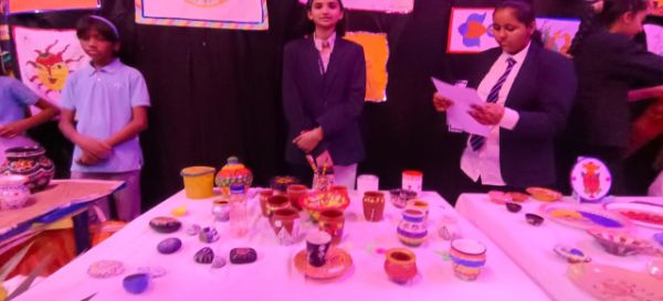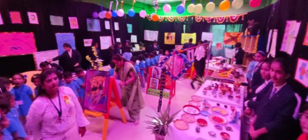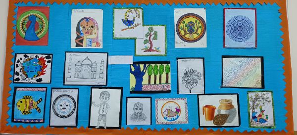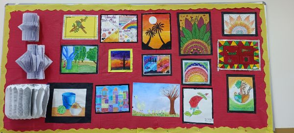 This art exhibition included all the elements of art created by the students. All the visitors witnessed the mesmerising transformation of our school's walls as they came alive with the vibrant hues and thought-provoking expressions of our talented students. This art exhibition was a testament to the boundless creativity that resides within each individual, fostered by our institution's unwavering support for artistic growth and self-expression.