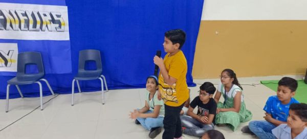 The students of Grade V came forward with a magnificent skit which beautifully presented a Podcast held among Entrepreneurs and the much awaited audience.