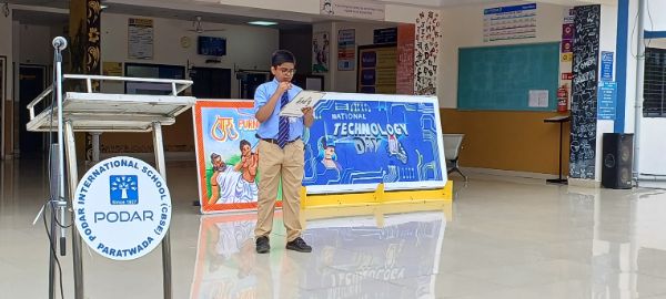 Podar International School, Paratwada, celebrated Library Science Day with great enthusiasm and creativity. The event was graced by our respected Principal Sir, Mr. Atul Patil, who inaugurated the program by lighting the ceremonial lamp.