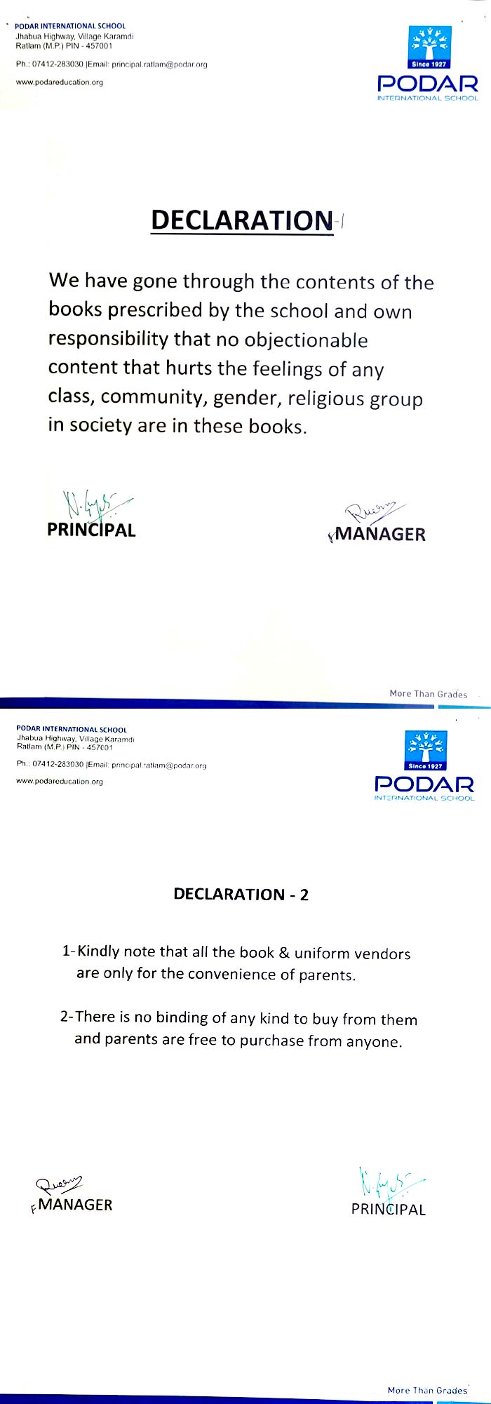 CBSE Declaration Letter in Ratlam, Madhya Pradesh