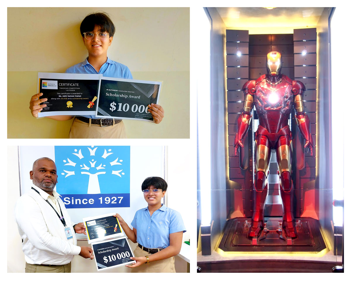 She collaborated with other students from the U.K. and prepared an Iron Man suit by 3D printing. This suit was displayed in an event held on 5th and 6th April 2023 at London and felicitation held on 16th April 2023 at Singapore which were attended by Aditi. She also got an opportunity to meet Mr. Robert Downey Jr., an actor who played the role of Iron Man.