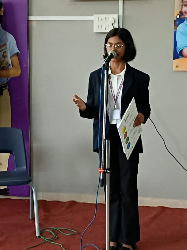 The students of grade I and II built a Robot using different coloured play dough after visualising a story based on a set of goofy robots. The students of grade III and IV shared the conversation about the use of technology through the – ‘A TETE-A-TETE BETWEEN...’ activity. The students of grade V and VI made amazing comic strips that brought out a conversation between a Smartphone user and their smart phones. Whereas the students of grade VII and VIII debated over the topic ‘Is the use of Technology making the Human Race smarter?’