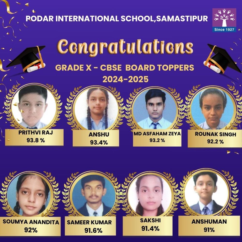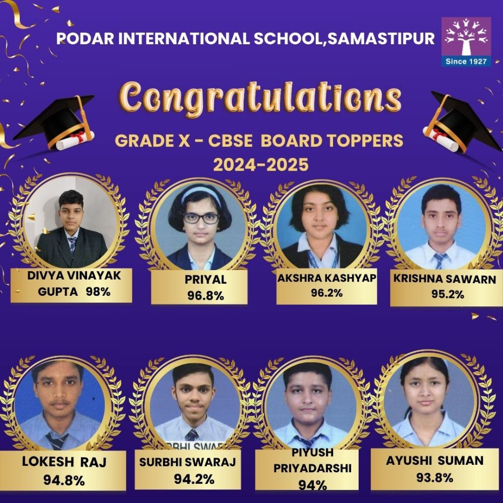 Podar International School, Samastipur, proudly announces the remarkable achievement of its students in the CBSE Class X Board Examinations. A total of 25 students have secured 90% and above, reflecting their dedication, hard work, and the guidance of their teachers and parents.