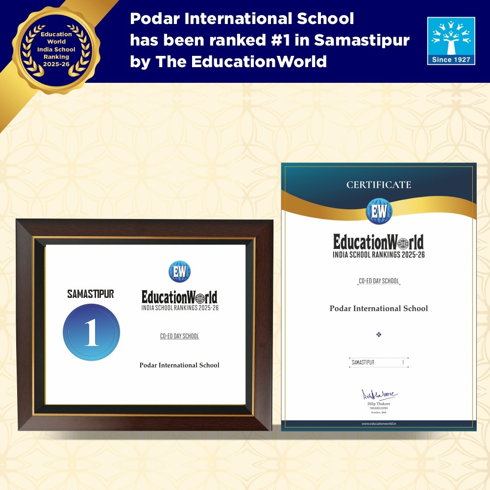 Podar International School has been ranked #1 in Samastipur by The EducationWorld - 2025