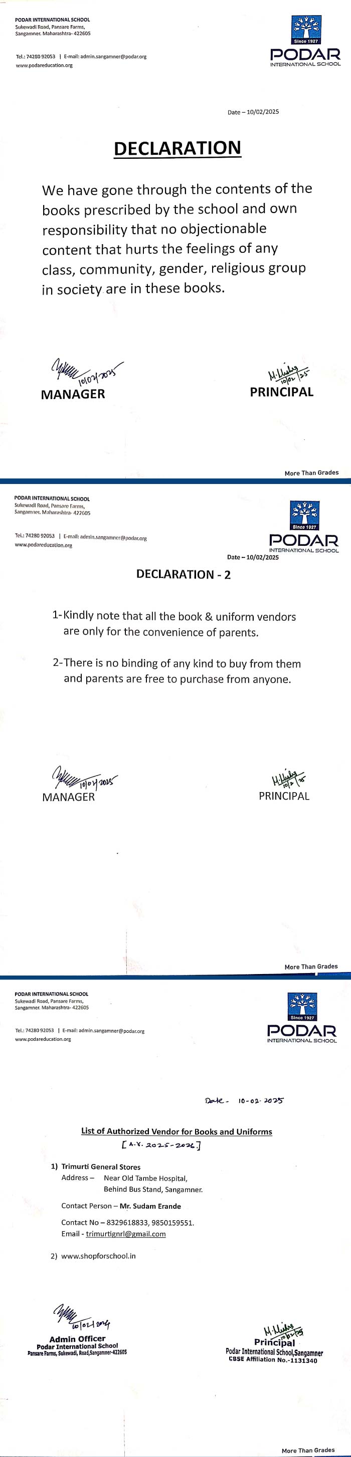 CBSE Declaration Letter in Sangamner, Maharashtra