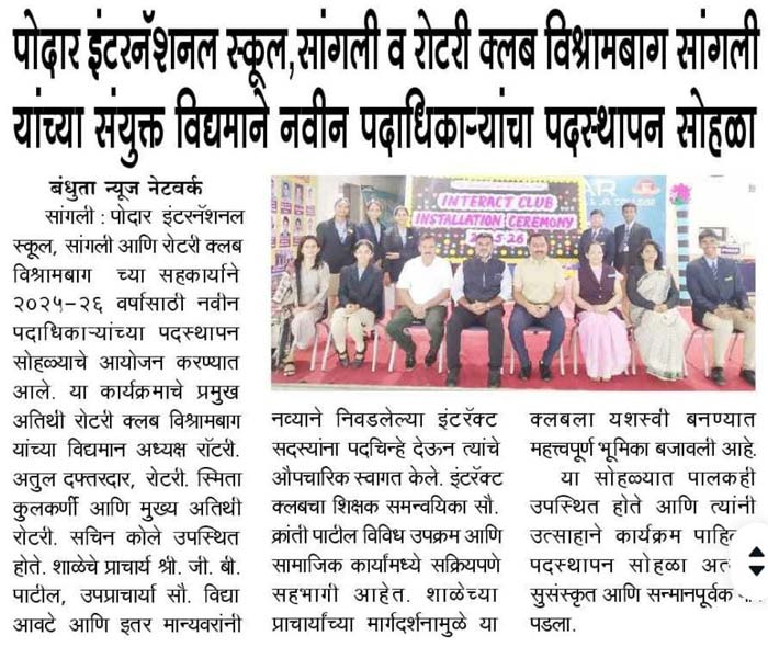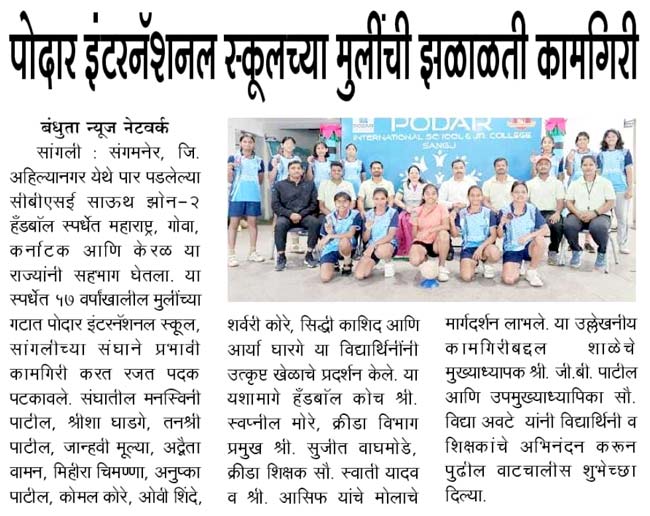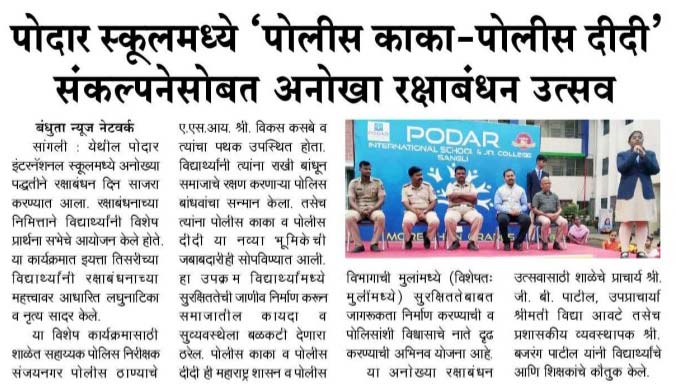 Podar International School Sangli (100% Result in X Std.) 2023-2024