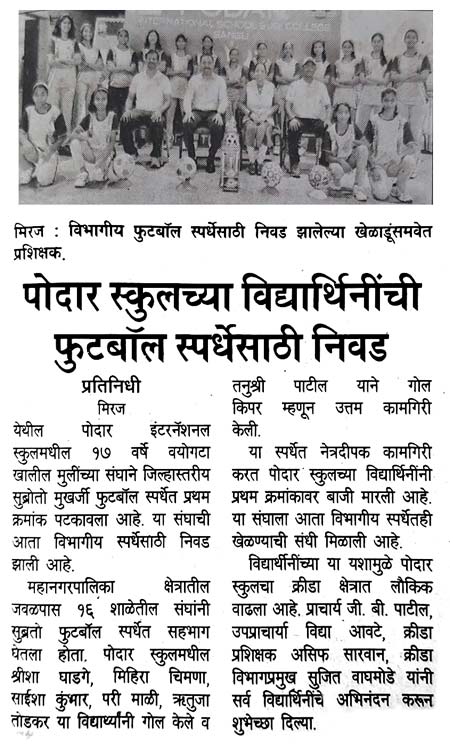 Podar international school Sangli has bagged Winner position in U-17 Subroto Mukharji Football Tournament 2024-25 and got selected for Divisional Tournament - 2024