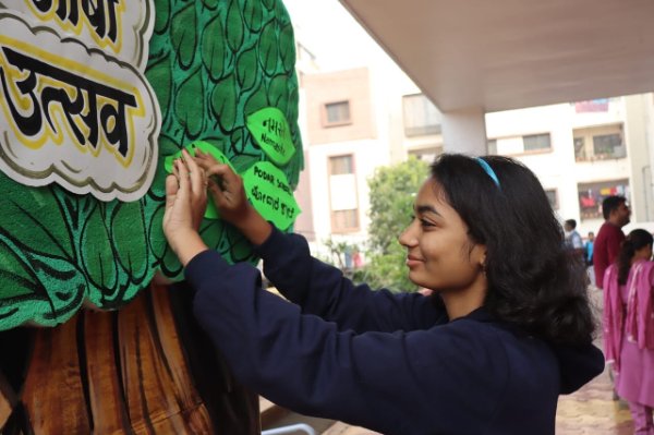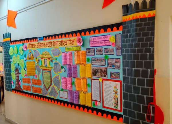 The Marathi Department thoughtfully prepared an informative display board depicting the diverse dialects of Marathi spoken across Maharashtra, while also showcasing valuable insights into Kusumagraj’s remarkable literary works. The board further introduced students to emerging Marathi literary figures encouraging them to explore contemporary Marathi literature.