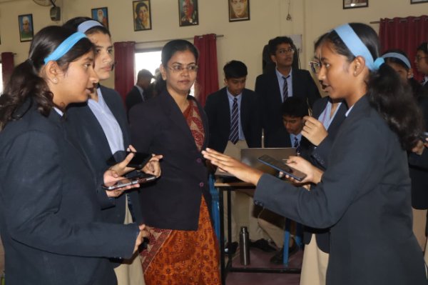 The highlight of the event was a deeply inspiring address by our Principal Sir. By thoughtfully weaving together the life and contributions of Sir C. V. Raman with relatable, real-life examples, he reminded us that scientific thinking begins with a simple question and a curious mind. To emphasize the importance of nurturing a scientific temperament among students, he shared a simple yet powerful example—placing a stick in water and observing how it appears —encouraging students to question why such phenomena occur instead of accepting them at face value.