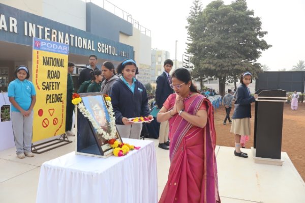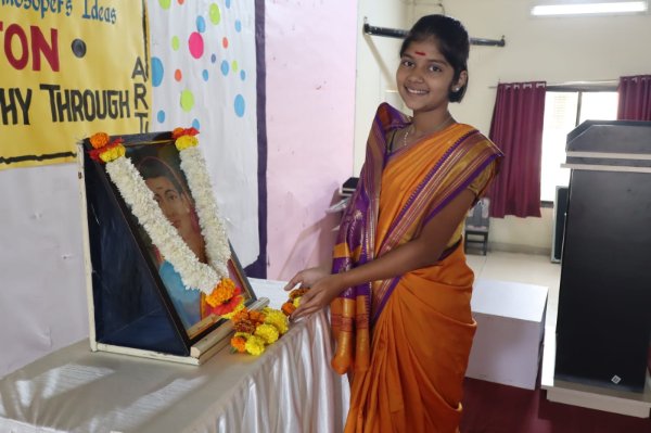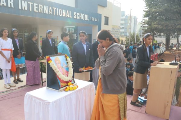 The Principal of PIS, Satara led the celebration by offering a floral tribute to Dr. Ambedkar, followed by all the teachers. This gesture symbolized the school's respect for his contributions to Indian society.