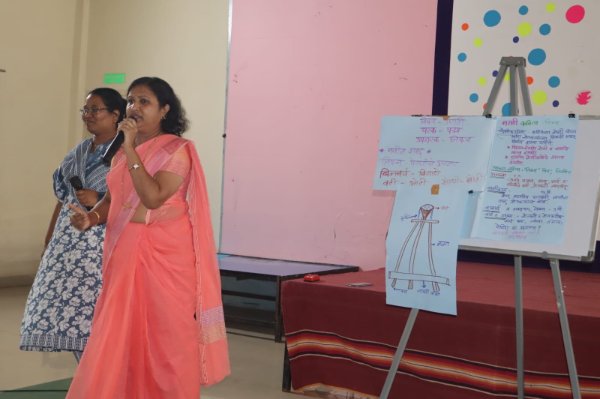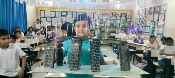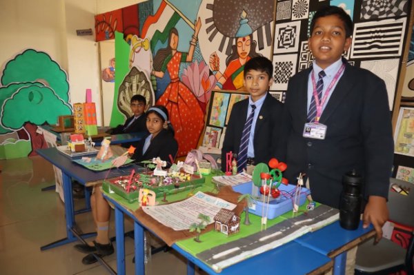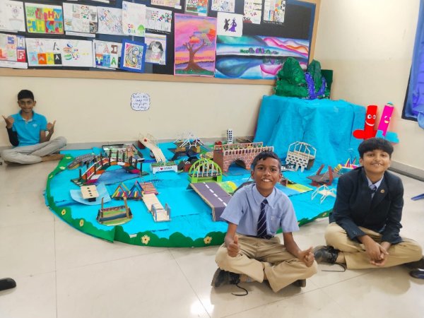 The story learned during the session was creatively presented through a skit. They presented innovative future vehicle models and explained their unique properties. Models of different types of bridges, created during the thematic sessions, were also displayed.