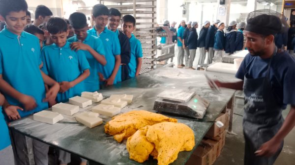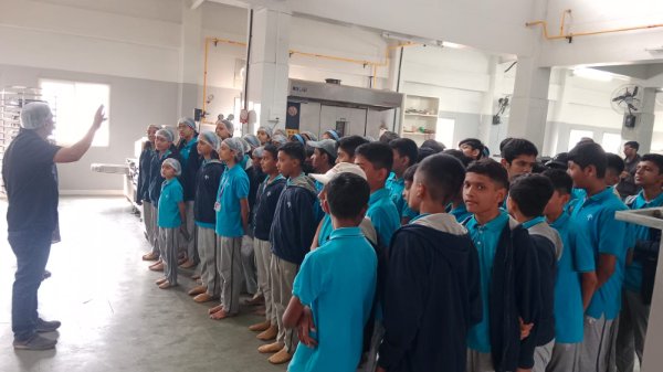 During the visit, students learned about the manufacturing of biscuits and cakes, including ingredient preparation, baking methods, and the packaging process.