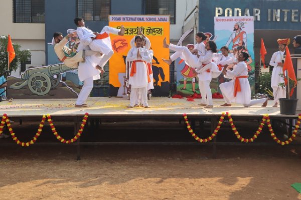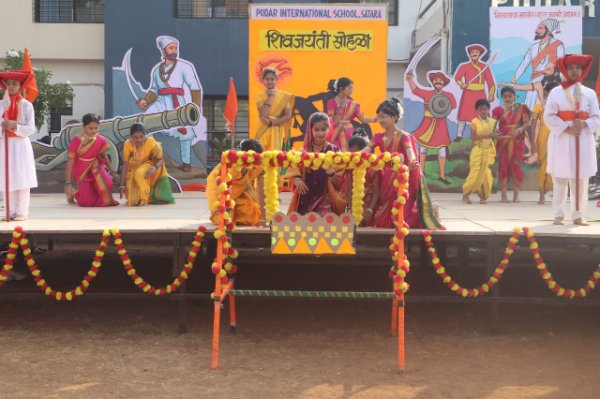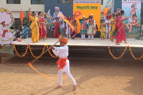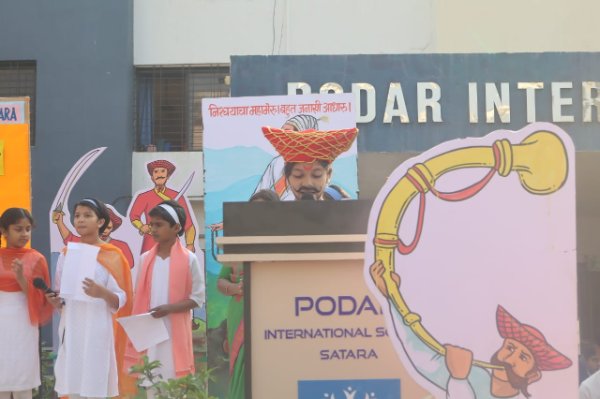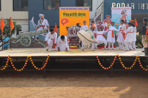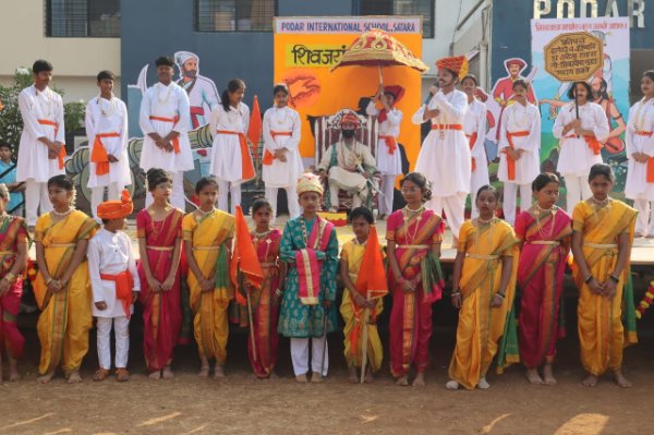Podar International School, Satara, celebrated Shivrajyabhishek Din with great fervor and enthusiasm. A special assembly was organized, featuring a reenactment of the coronation ceremony of Chhatrapati Shivaji Maharaj, followed by an energetic dance performance that highlighted his life and legacy.