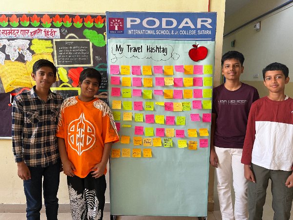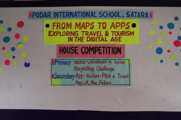 At Podar International School Satara, imagination met innovation as we proudly hosted two dynamic inter-house competitions — Primary House Competition: “Global Chronicles – A Travel Storytelling Challenge” and Secondary House Competition: “App itecture – Pitch a Travel App of the Future.”
