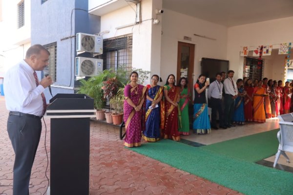 The Honourable Principal PIS, Satara addressed the gathering and delivered an inspiring speech, emphasizing the importance of preserving and promoting our Rajbhasha. The speech highlighted how language is not just a medium of communication but a reflection of culture, identity, and values. The celebration beautifully instilled a sense of pride and responsibility among students and staff to cherish and uphold the glory of the Marathi language.