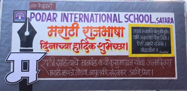 Podar International School Satara proudly celebrated Marathi Rajbhasha Diwas with great enthusiasm and cultural pride. The day, observed to honour the birth anniversary of Kusumagraj (Vishnu Vaman Shirwadkar), highlights the richness, heritage, and literary excellence of the Marathi language. A floral tribute was offered to Kusumagraj in reverence to his immense contribution to Marathi literature.