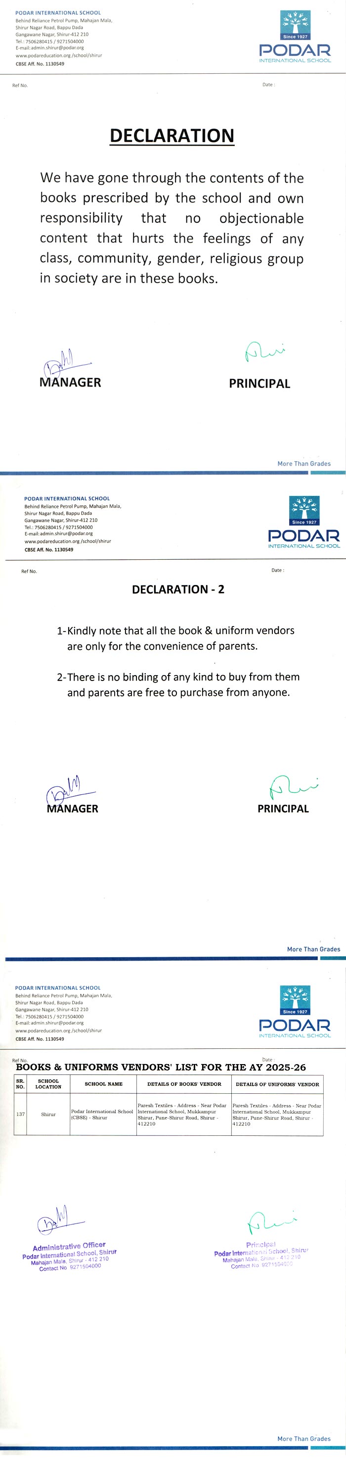 CBSE Declaration Letter in Shirur, Maharashtra