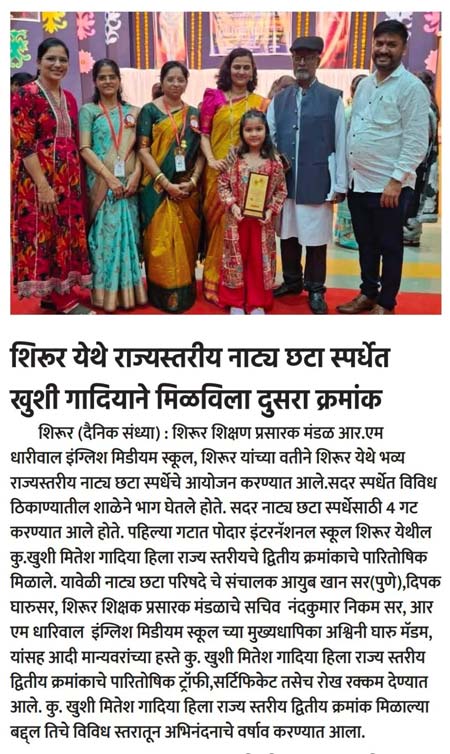 Khushi Gadiya Secures Second Place at State-Level One-Act Play Competition in Shirur - 2025