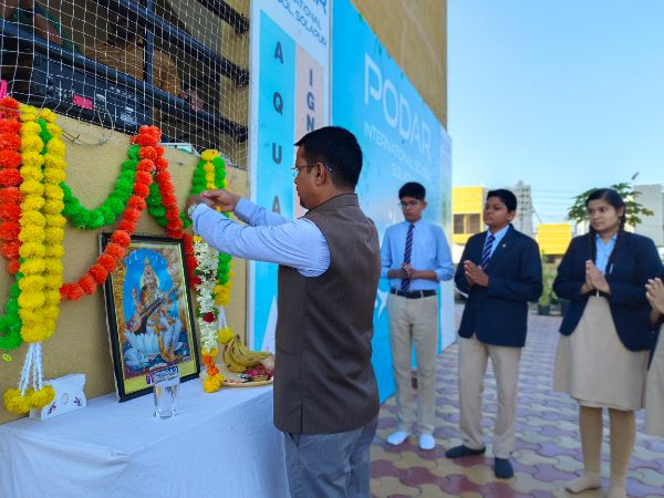 The celebration at Podar International School, Solapur included meaningful activities like students of grade VIII reciting dohas and performing a dance to express the importance of a Guru. The Principal Sir appreciated the student's efforts and addressed the gathering, emphasizing the value of the teacher-student relationship. Such celebrations help instill respect and gratitude in students towards their educators, which is a foundation of the Guru-Shishya tradition.