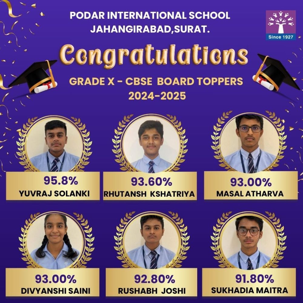 Celebrating Success: Podar International School Surat, Jahangirabad Students Shine in 10th CBSE Board Exams 2024-2025