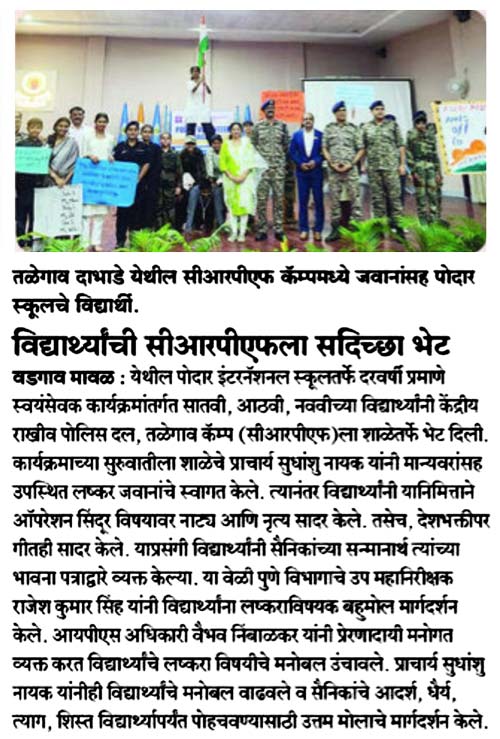 Students and teachers of Podar International School, Talegaon visited the CRPF camp, where they i...