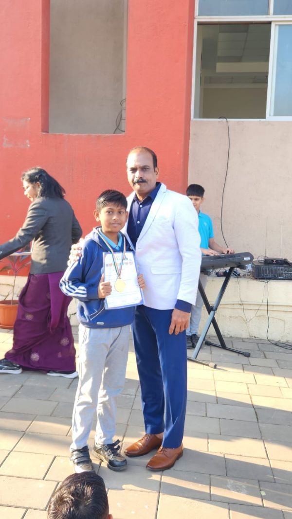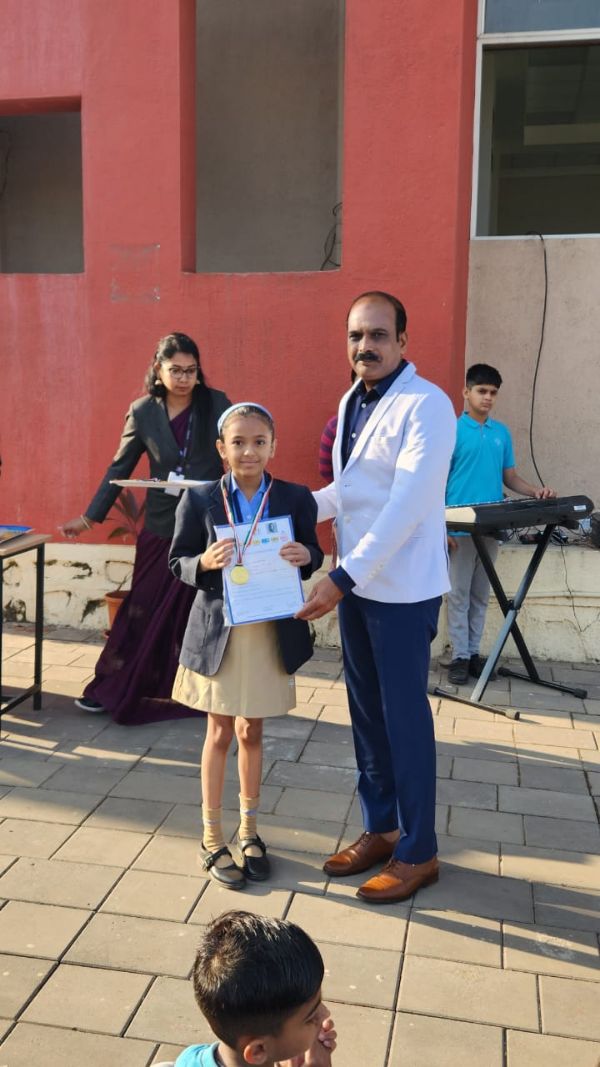 The event included a special felicitation: Miss Saee Baber received a Gold medal and a Bronze medal, and Mast. Nivid Nair received one Silver and one Bronze medal in the 9th Maharashtra State Level Kung Fu Championship 2024. One student received a Gold medal, and another received a Bronze medal. Certificates were also presented to recognize their achievements.