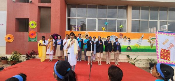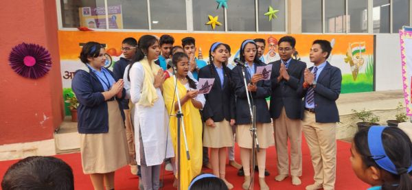 The ceremony commenced with the hoisting of the national flag by our respected Principal Sir and the Chief Guests, Dr. Nilesh Maslekar and Ms. Archana Debata, followed by the singing of the national anthem. This was a solemn moment that set the tone for the day's celebrations.
