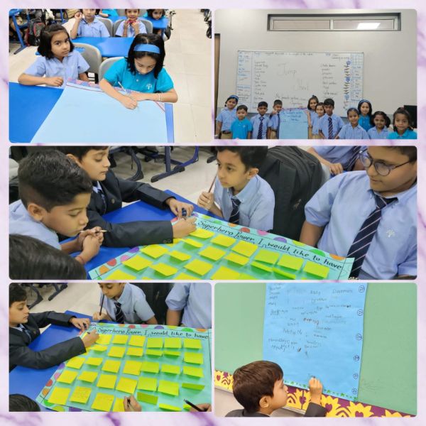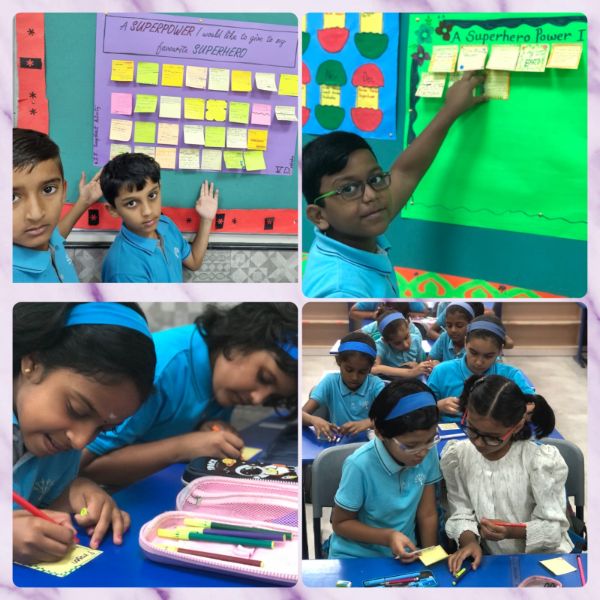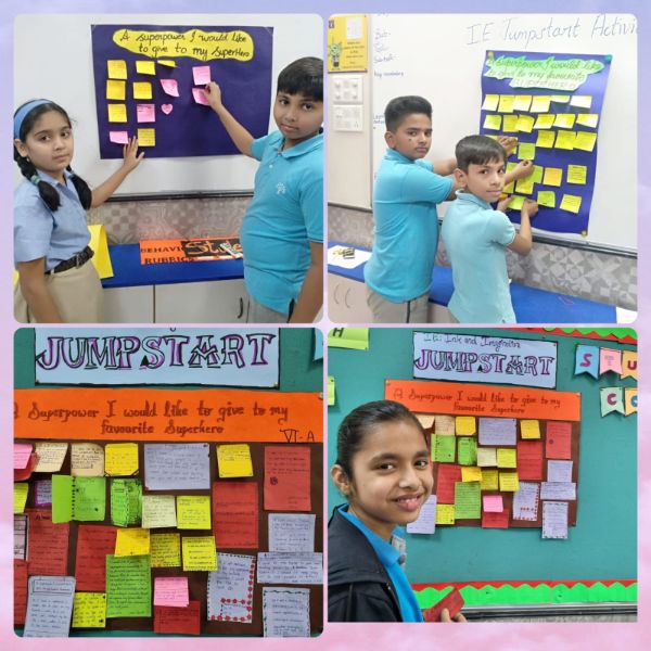 The activities for the ‘Takeoff Point’ like My Favourite Cartoon/Comic Character or Superhero, A superhero power I would like to have, A Superpower I would like to give to my favourite Superhero and – ‘Complete the dialogue for Snoopy’ were planned so as to immerse the students in the process of exploring as soon as they enter the school.