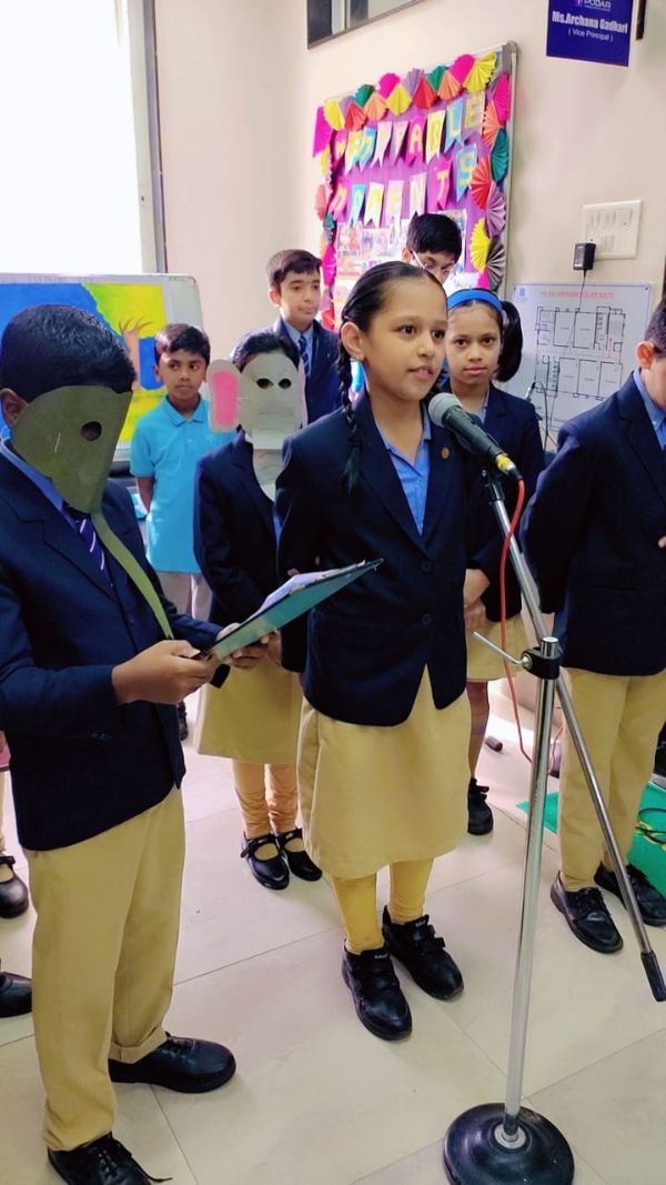 Class 6 C of Podar International School, #Talegaon conducted a special assembly for celebrating Halloween Day, in which they performed a skit, and provided more information about Halloween.