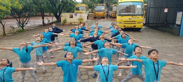 The day commenced with rejuvenating yoga sessions held in the open air, during special assembly under the canopy of blue skies. Led by trained instructor Ms. Poonam Dhore ma’am, students from all grades participated enthusiastically in various yoga asanas and breathing exercises. Simultaneously, melodious tunes filled the school’s atmosphere as our talented musicians showcased their skills. Each note resonated with emotion and skill, captivating the audience and fostering a sense of cultural appreciation.