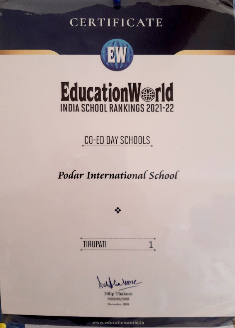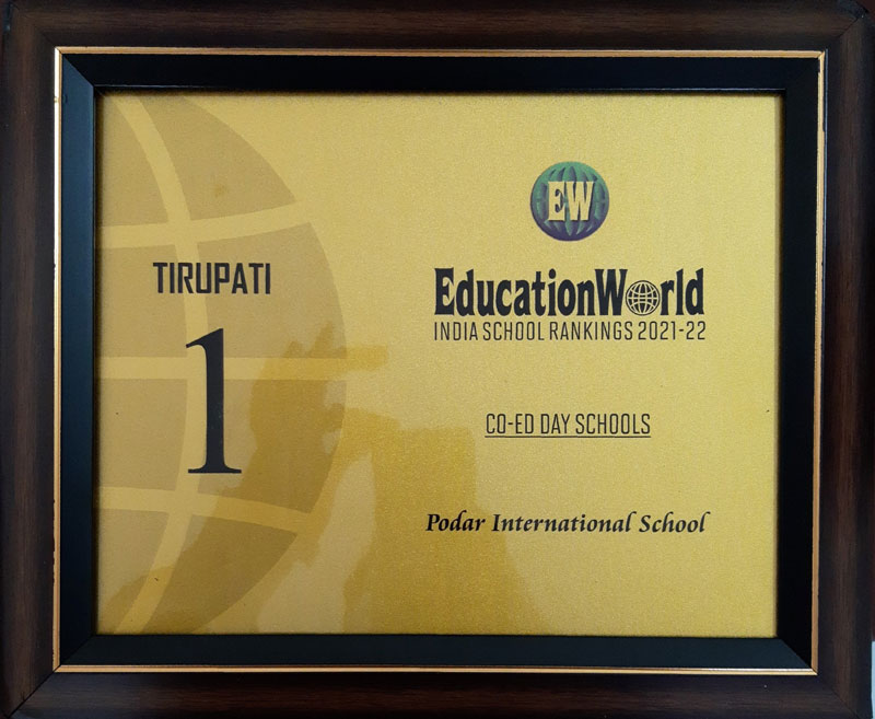 Education World Certificate and Trophy Ranking Number 1 School in Tirupati.