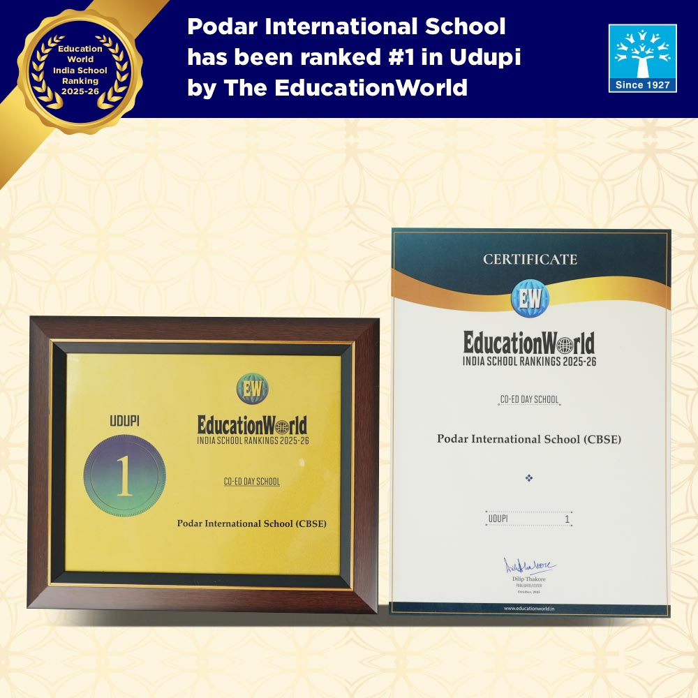 Podar International School has been ranked #1 in Udupi by The EducationWorld - 2025