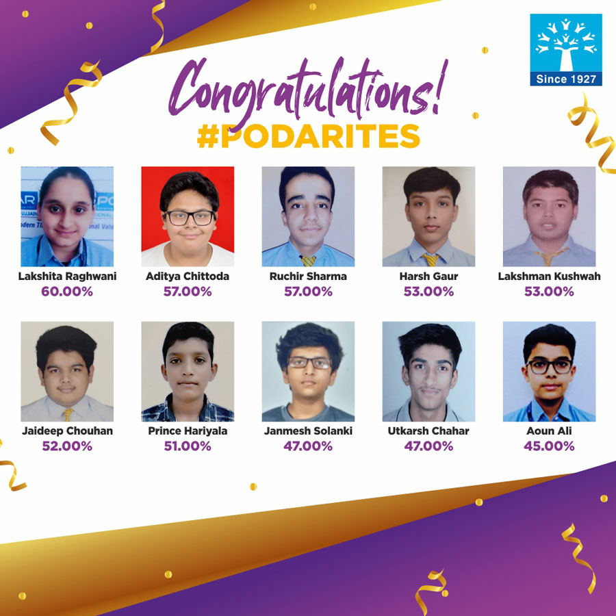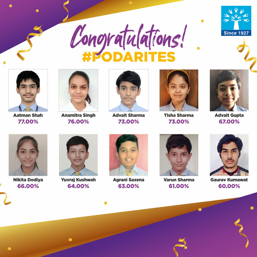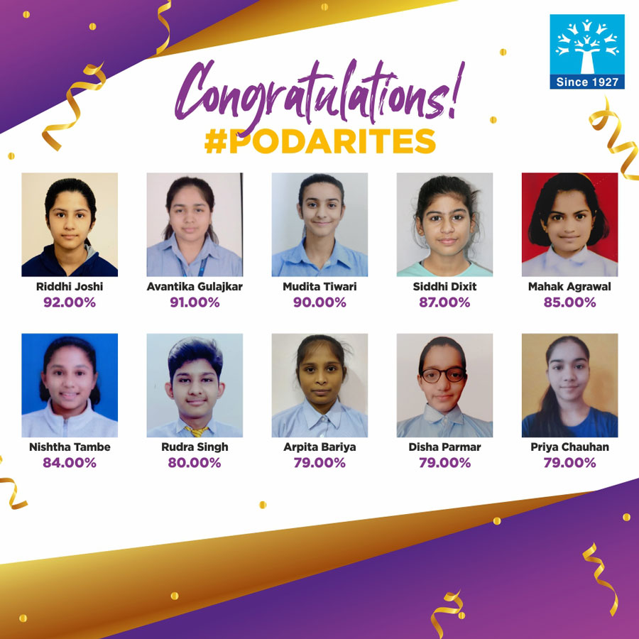 Podar International School, Ujjain would like to congratulate all our students who passed out with flying colours in the CBSE Std X Board Examinations.