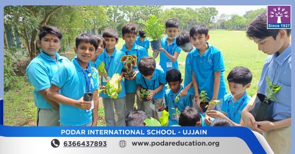 Podar International School, Ujjain, recently organized a Plantation Activity to instill environmental awareness and responsibility among students. The young learners actively participated in planting saplings within the school premises, embracing the importance of greenery and sustainability.