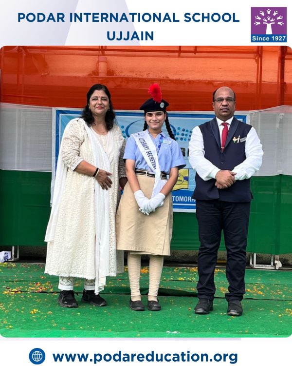 Podar International School, Ujjain, celebrated its Annual Function 2025 with great enthusiasm and grandeur. The event was graced by Shri Neeraj Kumar Singh, IAS, as the Chief Guest, along with the esteemed presence of Shri Santosh Malviya, RTO Officer, and Shri Pradeep Sharma, Superintendent of Police (SP), Ujjain.